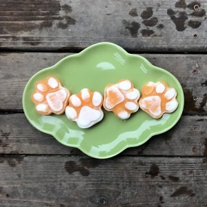 Place paw mold onto a cookie sheet or cutting board for stability when moving from counter to freezer.